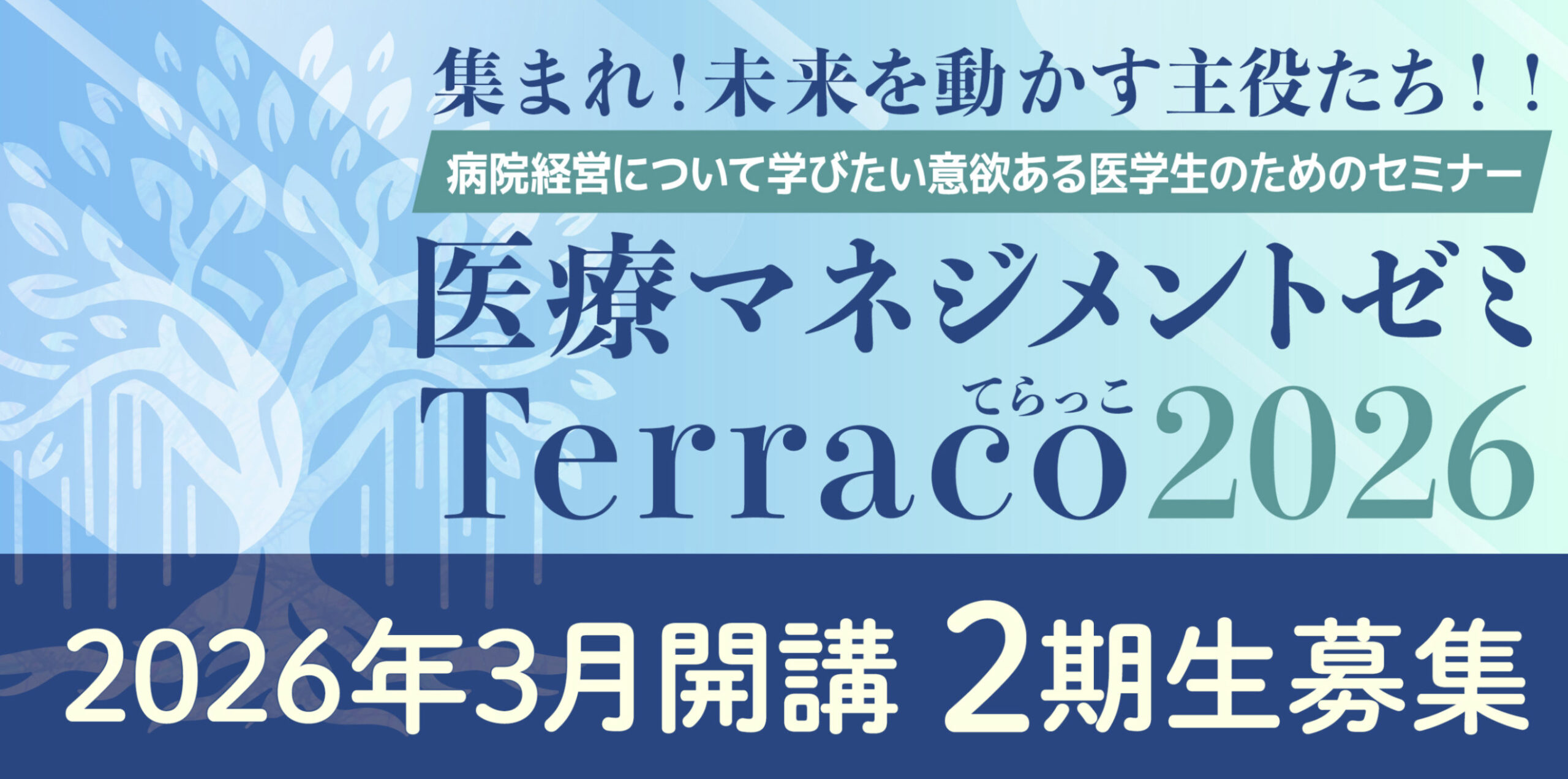 村上大介先生が主催する、病院経営について学びたい意欲ある医学生・若手医師のためのセミナー「医療マネジメントゼミ Terraco(てらっこ)」にて弊社代表、紀平が講師を担当いたします。